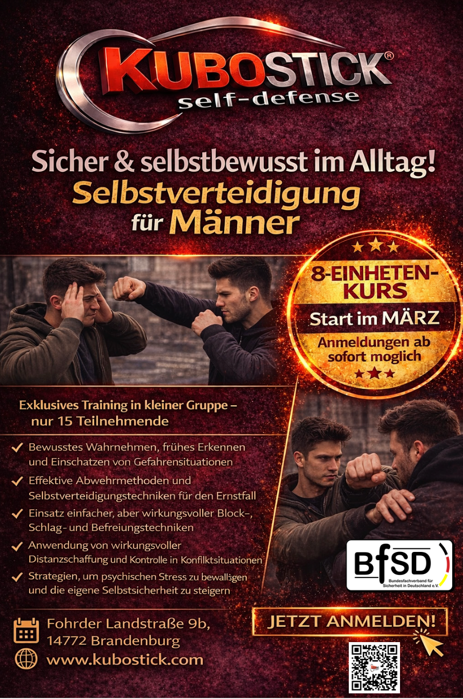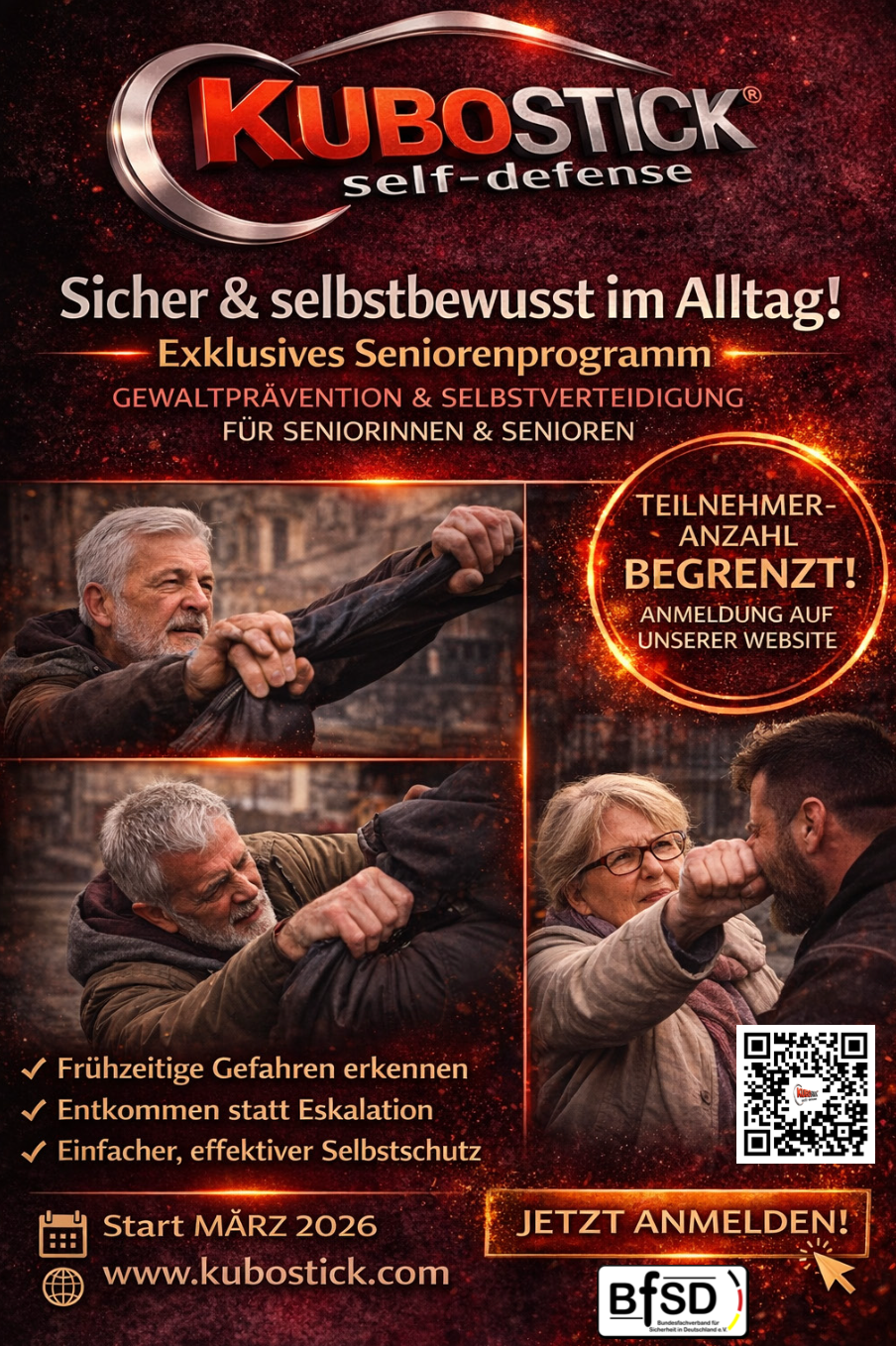 Bei KUBOSTICK® glauben wir, dass Kampfkunst mehr ist als nur körperliche Technik und rohe Kraft– sie ist ein Weg, um geistige Stärke und sicheres Auftreten zu entwickeln. Da nicht jeder die Möglichkeit hat mehrmals wöchentlich im Verein zu trainieren, lernen man in unseren Seminaren, sich effektiv und ohne großen Kraftaufwand zu verteidigen. Durch gezieltes Training an den empfindlichsten Druckpunkten des Körpers werden einfache und wirkungsvolle Techniken vermittelt, die in Gefahrensituationen angewendet werden können.